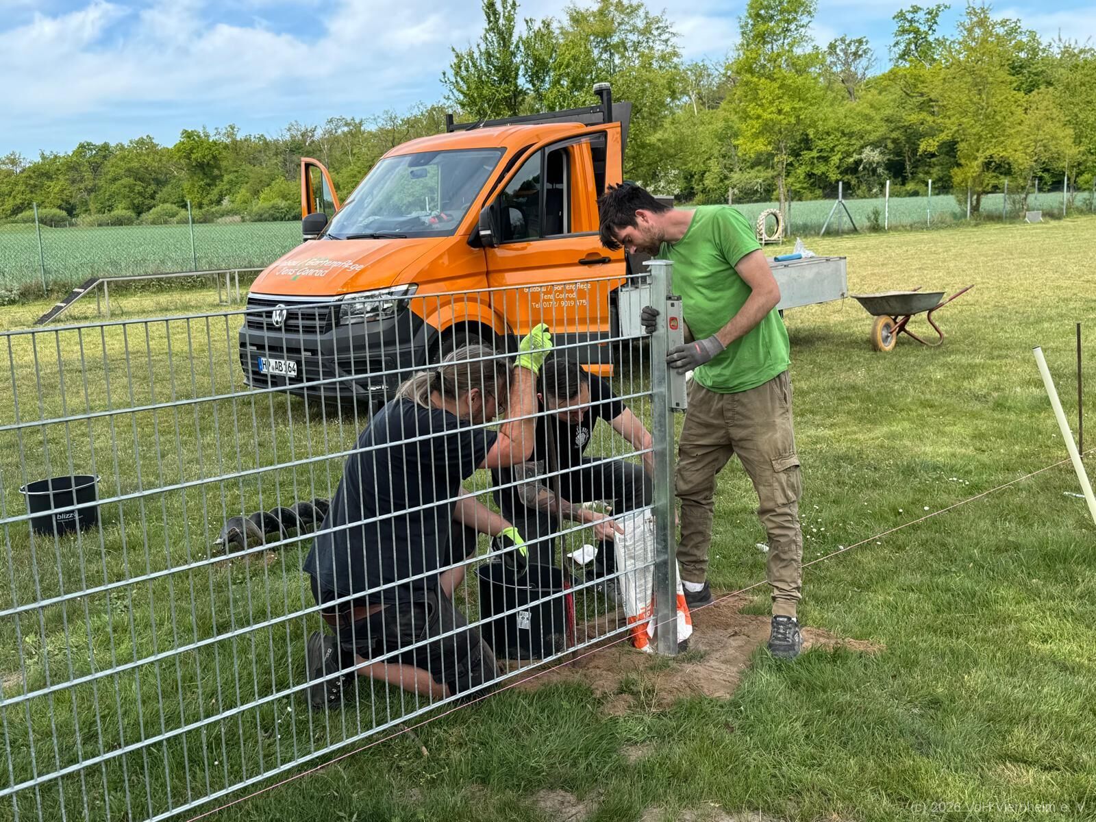 Weil besonders der Samstag ein sehr aktiver Tag ist und alle Fellnasen sowie ihre Menschein in den Gruppen entspannt trainieren sollen, wurde in einem großartigen Sonder-Arbeitseinsatz unter der Leitung des Gartenbaufachmanns Jens Conrad, Galabau/ Gartenpflege, sowie der Unterstützung fleißiger Helferinnen und Helfer aus dem Verein ein weiterer Zaun errichtet.