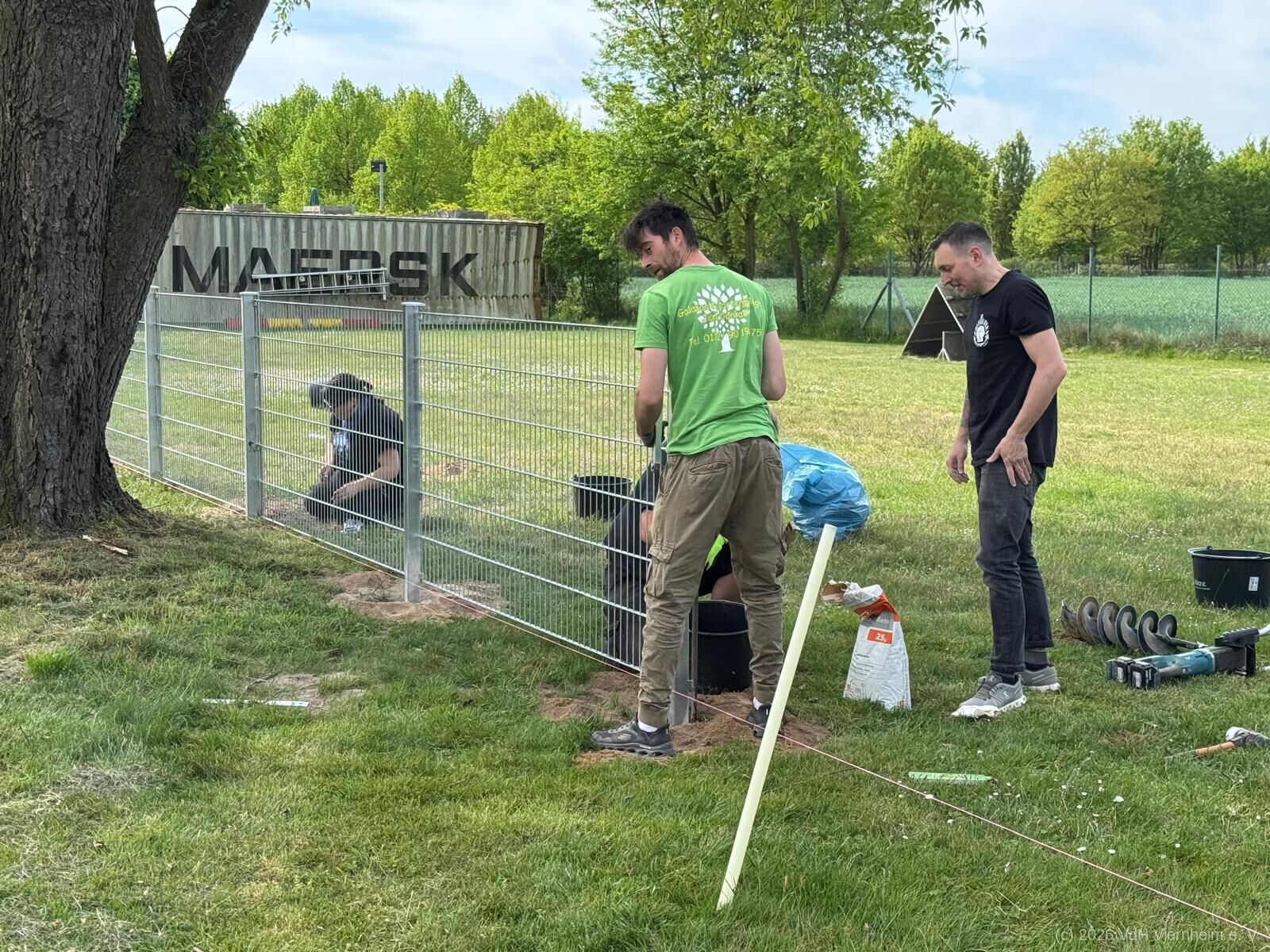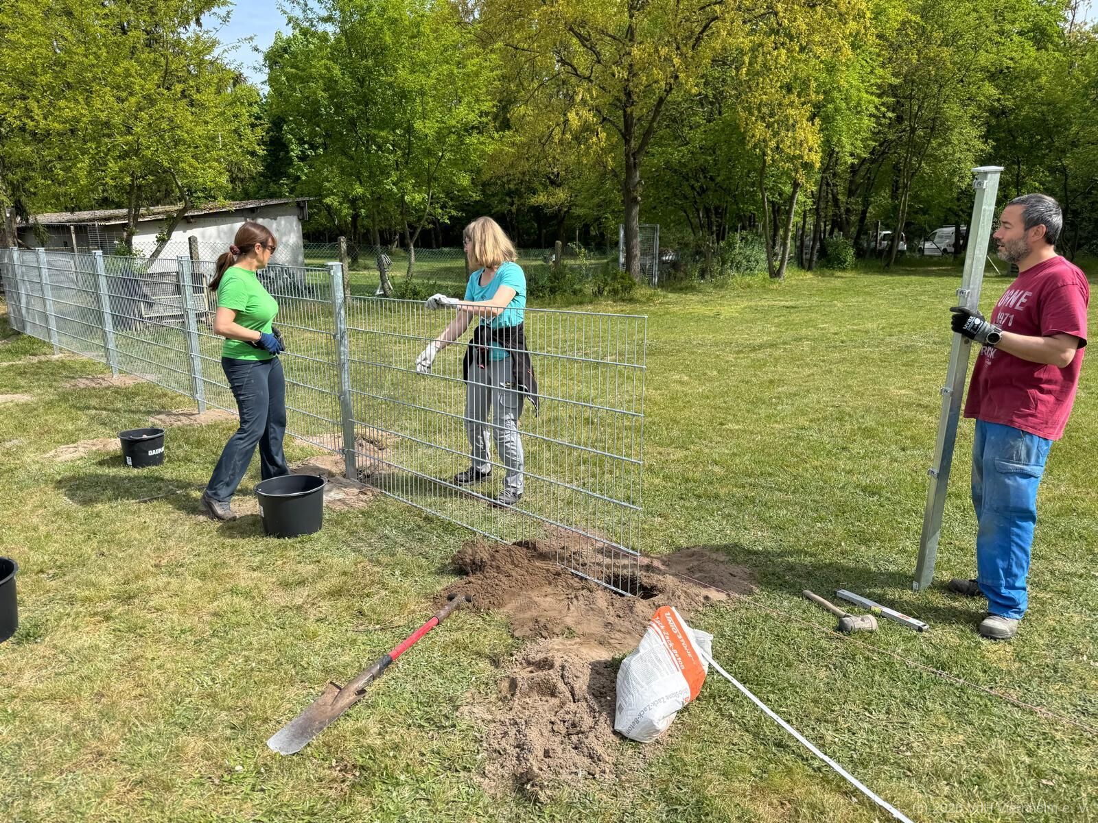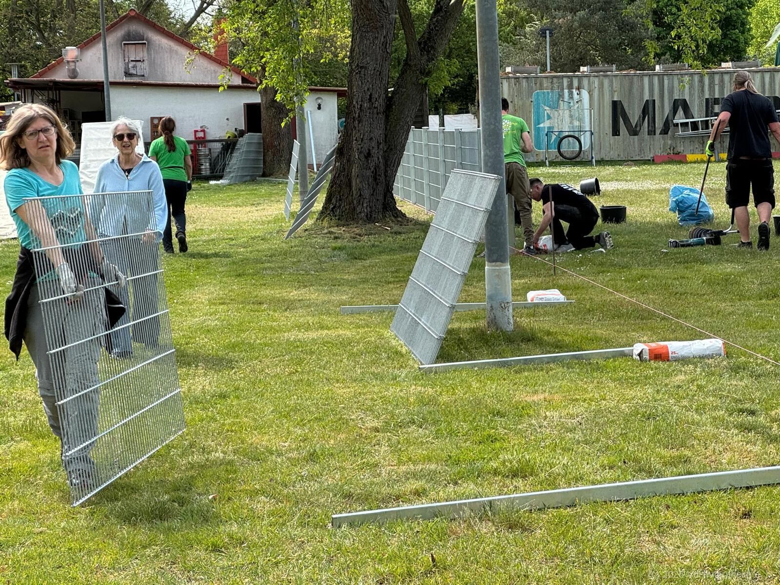 Weil besonders der Samstag ein sehr aktiver Tag ist und alle Fellnasen sowie ihre Menschein in den Gruppen entspannt trainieren sollen, wurde in einem großartigen Sonder-Arbeitseinsatz unter der Leitung des Gartenbaufachmanns Jens Conrad, Galabau/ Gartenpflege, sowie der Unterstützung fleißiger Helferinnen und Helfer aus dem Verein ein weiterer Zaun errichtet.